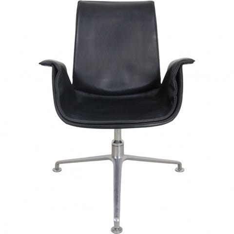 To lænestole af Preben Fabricius og Jørgen Kastholm. - model 'Tulip', betrukket med mørkeblåt læder. Monteret på drejelig trepasfod af aluminium. Fremstillet hos Walter Knoll.