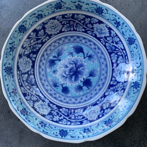 Sæt af Nippon porcelæns skåle. Den store måler 16 x 9 cm, de små måler 6 x 4 cm