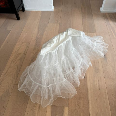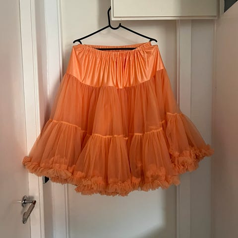 Fin rødt tylskørt / nederdel der er 2 lag tyl, elastik i taljen. Giver godt fylde under en kjole, kan også bæres ude.