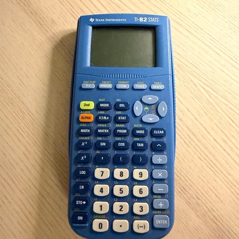 Texas Instruments TI-82 Stats lommeregner med grafisk display og funktioner til statistik og matematik.