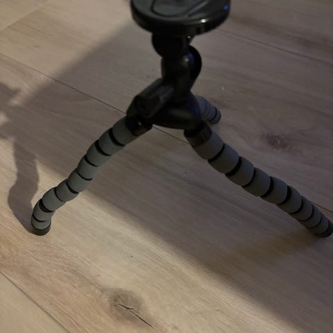 Kamerastativ med justerbar højde og lpadholder. Stativet er sort og i virkelig god stand Kan blive op til 150 centimeter høj