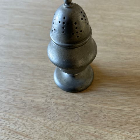 To strøer af tin. Cirka 13 cm høje. Pris pr. styk.