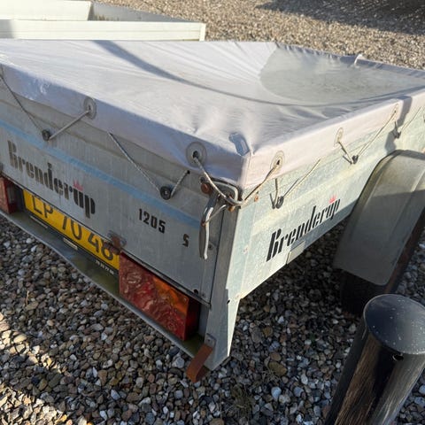 Brenderup trailer med blå presenning i meget fin stand. Leveres nysynet klar til omregistrering. Kan også sælges til firma som +moms trailer.