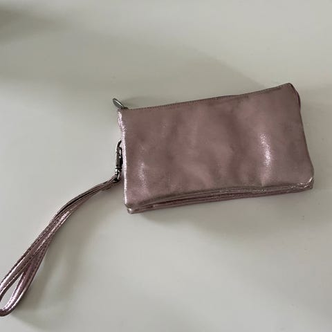 Smuk og stilren clutch/pung i sort læder med fine gulddetaljer.