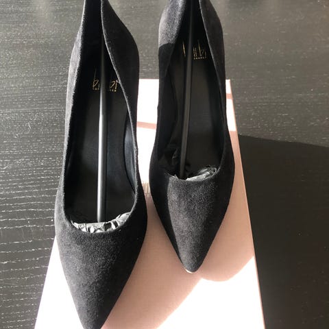 Lækker sko i ruskind med spænde foran. Hæl højde - 4,5 cm. Mål indvendig længde - ca. 26 cm. Meget velholdt - fejler ikke noget. Ikke ryger hjem