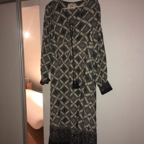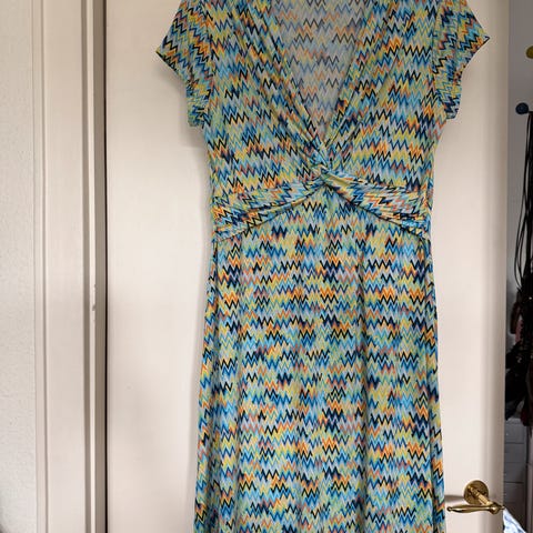 Frk fie kjole med tørklæde til særlige lejligheder i størrelse S. Kjolen er blå og lavet af polyester. Isblå farve nypris 3000 Designet til kvinder. Kun brugt 1 gang og nyrenset