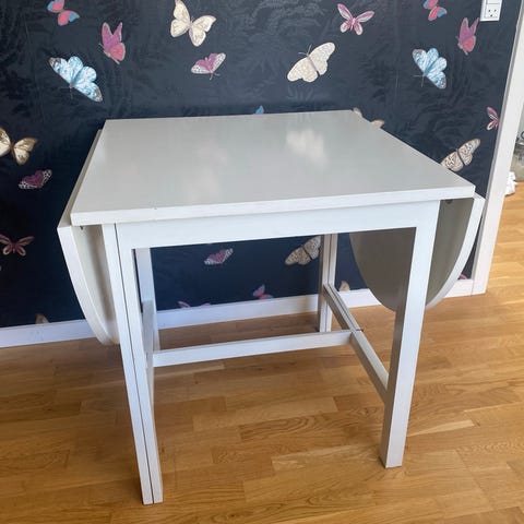 Traditionelt pladsbesparende design med varme og karakter. Dette klapbord af træ kan forlænges, så er der plads til 2-4 personer. Perfekt, når du har brug for ekstra plads til at lave projekter, lægge tøj sammen eller spise med dine venner.