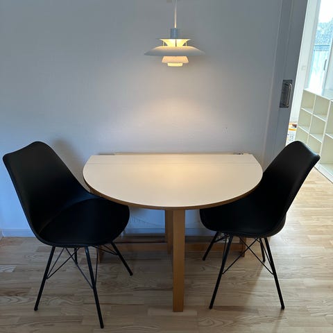 Klapbord og fire stole - spisebordsæt