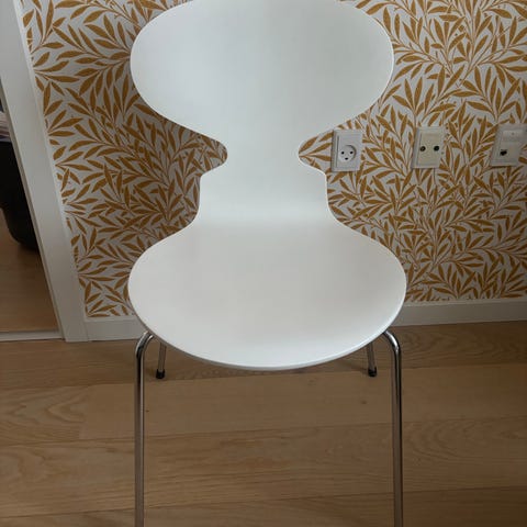 2x2 stk Fritz Hansen Arne Jacobsen (1500 kr for 2 stk). Myren stole. Stolene er fremstillet i formpresset træ med sort finish og har et stel i krom. Brugsspor på sæder og kanter, hvilke kan ses på billederne.