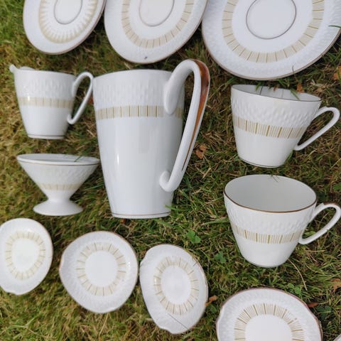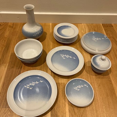 Ikke WMF! Men fint svane stel! Ingen skår. 3 forskellige størrelse. Den store har en lille glasur fejl.