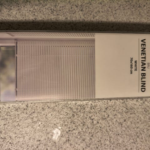 IKEA gardin persienner i hvid farve, designet til at dække vinduer. Persiennerne er fremstillet af let materiale og kan justeres for at regulere lysindfald og privatliv.
