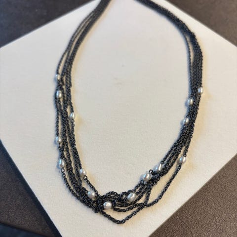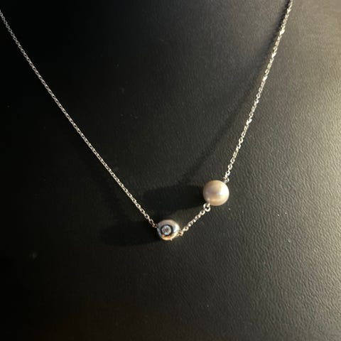 Oxyderet sølv halssmykke med vedhæng og med kæde i 45 cm - og stempel 925 og fra firmaet Scrouples. - kan sendes for 47 kr
