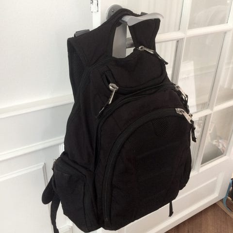Den har ligget nogle år i et skur og trænger til en klud, men selve tasken fejler ingenting (lynlåse, remme mm.)