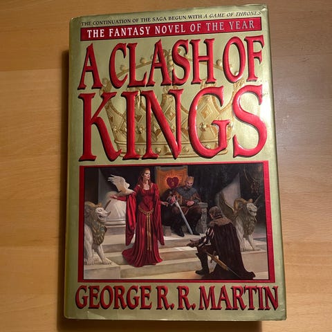 George R.R. Martin Kongernes Kamp bog. Anden bind i serien. Indeholder fortællinger om magtkampe og intriger i en fantasyverden.