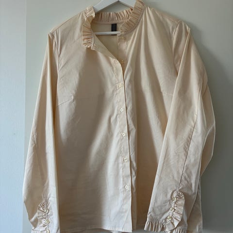 Lækker skjorte med flot åbning foran. Str. 38. 100% bomuld. Beige/Nougat farveMeget velholdt - fejler ikke noget.