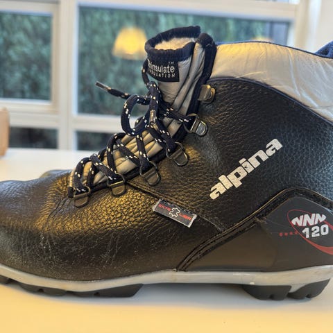 Langrendstøvler i sort med snørebånd og reflekterende detaljer bagpå. Støvlerne har en foret inderside for varme og komfort. NNN bindinger str 44 (43).
