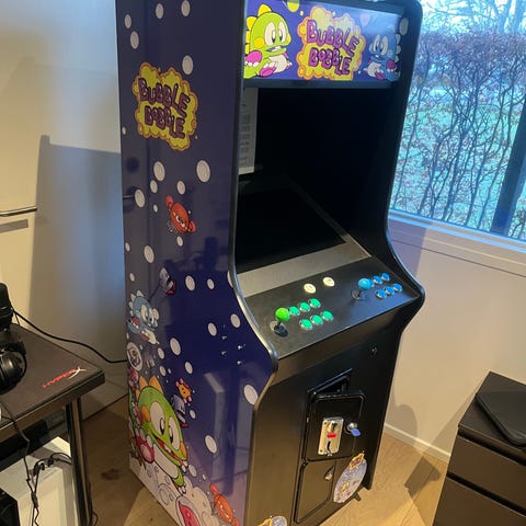 Bubble Bobble arkademaskine med joystick og knapper til spilkontrol. Der er ca 2300 spil incl alle de klassiske spil.