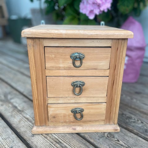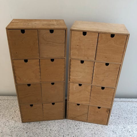 2 stk skuffe skabe i bøgefiner de er pæne de måler i højden 81 cm og i bredden 39 cm og i dybden 39 cm prisen er for dem begge 2 500 kroner Man kan også købe 1 stk så koster den 300 kroner prisen er ikke til forhandling
