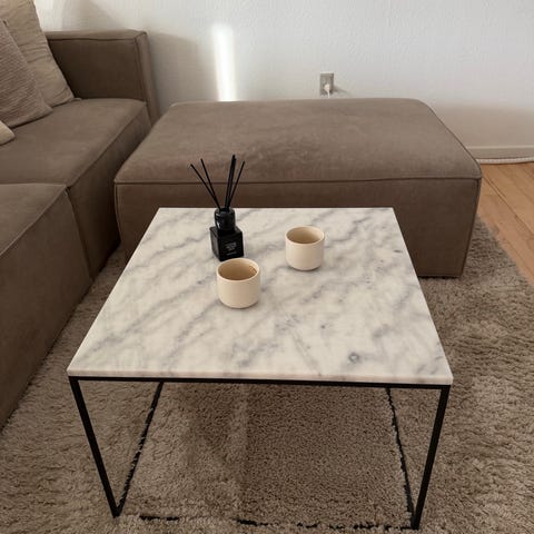 Brunt marmor sofabord. Måler 42,5 X 55 CM