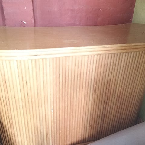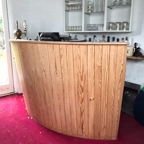 Bar - perfekt som hjemmebar. Det ternede linoleum kan nemt erstattes af noget andet. 170 cm lang. 73 dyb og 115 høj