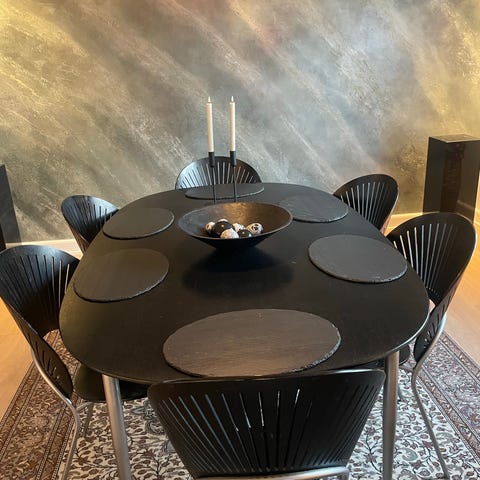Pæn overflade, men fremstår med flere brugsspor i bordkanten.