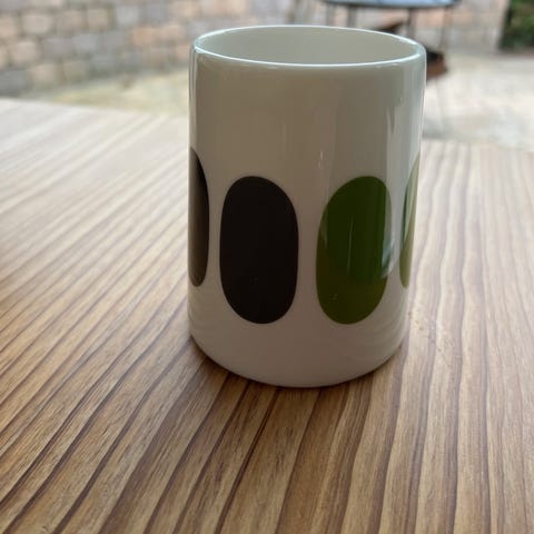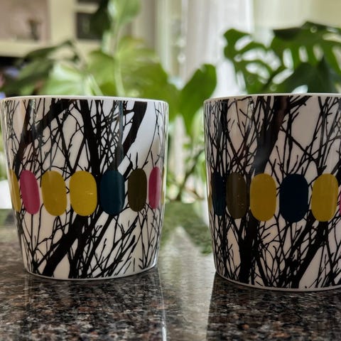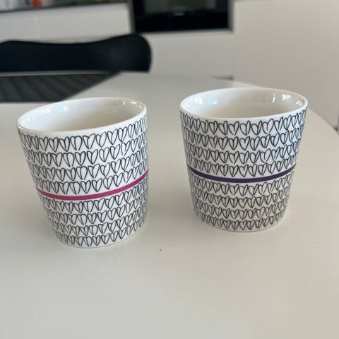 2 krus et højt med sølvring 1 lavt med grøn ring