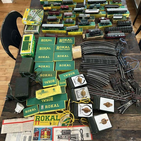 Flot, tungt lokomotiv og vogn fra tyske Rokal. Fra 1960’erne. Ligger i den originale æske. Toget er ikke afprøvet. Fast pris. Kan evt sendes for 55 kroner Telefon 71701243