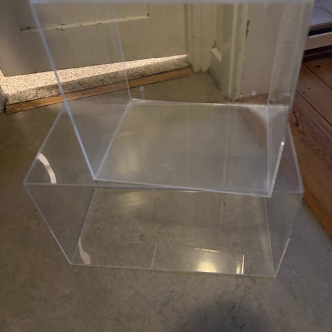Hay kasser på hjul og medfølgende bordplade