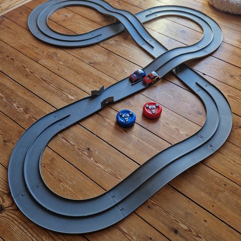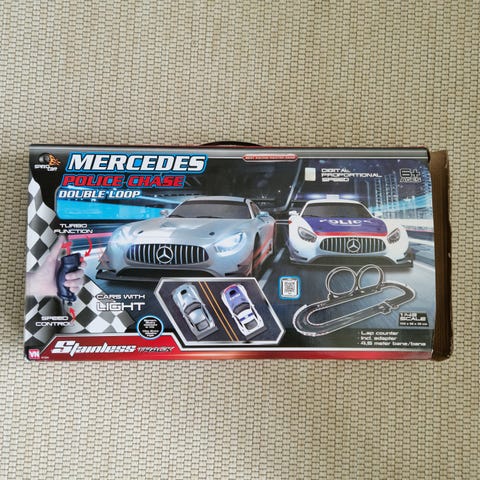 Racerbanen er givet til os i dåbsgave i 2022 og har siden stået i tør kælder. Sælges pga pladsmangel.