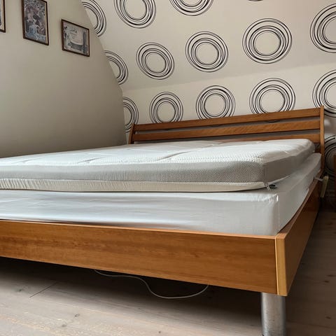 2 enkeltsenge elevation med sammenhængende topmadras 200x180 cm ialt. Blå.