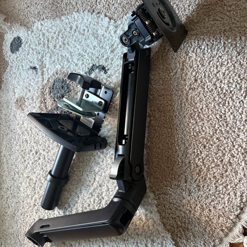 Alt fungerer fejlfrit, og alle nødvendige skruer og beslag medfølger. Perfekt til dig, der vil have en fleksibel monitorarm med ekstra rækkevidde.