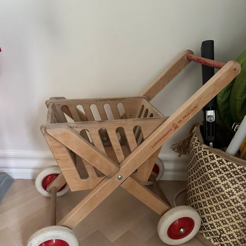 Indkøbsvogn i træ fra Viga med brugsspor.