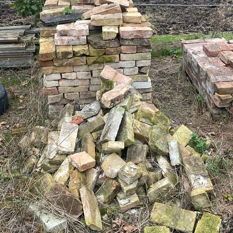 Brændte mursten i blandede størrelser