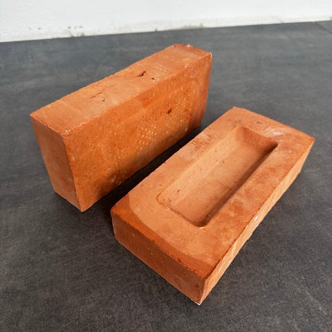Brændte mursten i forskellige størrelser og farver, velegnet til byggeri og renoveringsprojekter.