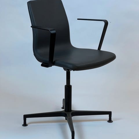 Bruges til ældre, der har svært ved at sætte sig og komme helt ind til bordet. Nem at betjene. Kan dreje til siden og skydes ind under bordet, når man har sat sig. Stolen står i Allerød. Nypris 5.900