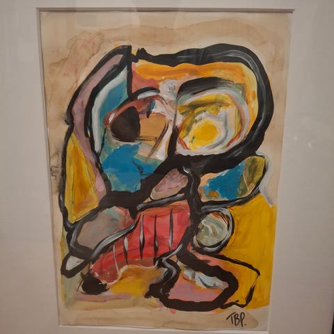 Tre originale akrylmalerier med titlen "Parcellerier"