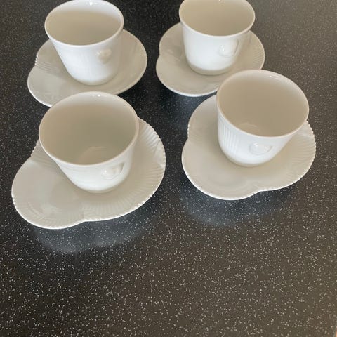 Royal Copenhagen Hvid Elements termokopper. Koppen har en enkel og klassisk design med riflet overflade. Er næsten ikke brugt, kun en smule spor i bunden (som kan ses på billedet). 500kr for begge