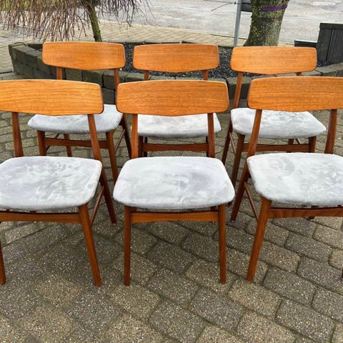 Smukke velholdte teak stole af danske Wegner. Fremstår i flot stand. Sælges samlet. Prisen er pr. stol. Sendes ikke. Hentes i Vejle og kan medbringes til Aarhus