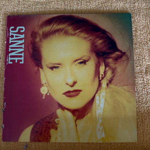 Sanne LP vinylplade med cover og billeder af kunstneren. Pladen indeholder musik og er en fysisk medieudgivelse i standard LP-format.