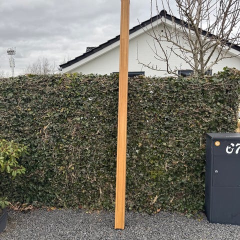 Tokyo ThermoWood gyldenbrun 83x140 cm. Uåbnet. Ny pris kr. 1.250. Stolpe Plus omlimet sort 9x9x238 Ny pris kr. 550 kan købes sammen med hegn til i alt kr. 900.