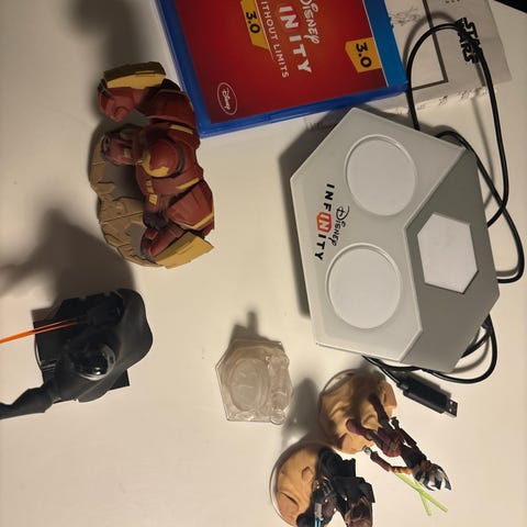 Starterpakke til Disneys Infinity 2,0 samt 2 pakker med 2 figurer og bane og endelig 7 ekstra figurer