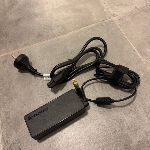Lenovo Adapter til computer med standard stik og tilslutning. Sort farve med tilhørende strømkabel. Velegnet til kompatible Lenovo bærbare computere.