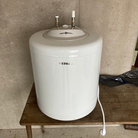 Jeg købte den som midlertidig varmtvandsbeholder, mens jeg ventede på fjernvarme. Den er kun 2 år gammel og fungerer rigtig godt. Den har ikke en skramme. Nu har jeg fået fjernvarme og sælger den derfor