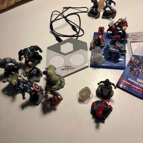 Disneys Infinity 3.0 til PS4, starterpakke med portal, figurer og bane samt 2 ekstra figurer.