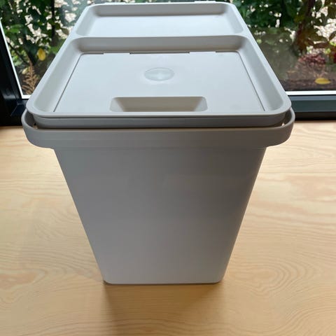 IKEA rund affaldsspand i metal med perforerede huller. Farve: hvid. Velegnet til brug som skraldespand i hjemmet eller på kontoret.