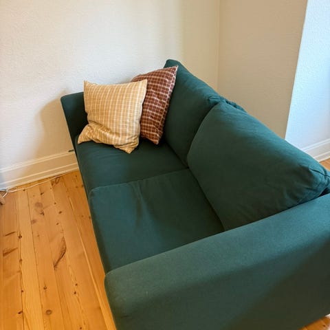 Det ene armlæn fejler intet og det andet lidt mere brugt og det er lidt medtaget indvendigt men det ses ikke.