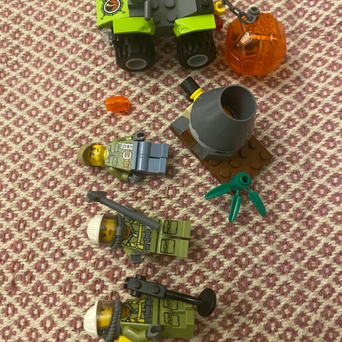LEGO City 60122 Vulkanudgravningskøretøj. Sættet indeholder et udgravningskøretøj med bælter, en lille ATV, en vulkansten og 3 minifigurer. Egnet til børn i alderen 6-12 år. 324 dele fra røg- og dyrefrit hjem. Alle dele, original samlevejledning og original æske medfølger.
