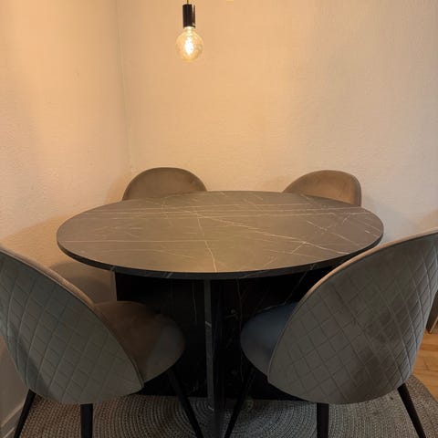 Stilfuldt marmor spisebord med plads til ca. 8 -10 personer. Næsten nyt.