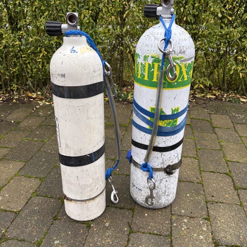 LUXFER 11,1L / 80CF med stagerig. Trykprøvet og O2 renset i august 2025. Nyserviceret ventil.
