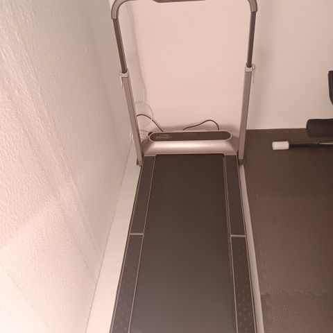 React gåbånd med digitalt display til visning af tid, afstand, hastighed og kalorier. Bemærk at gåbåndet ikke kører elektrisk, men ud fra hastigheden man går.